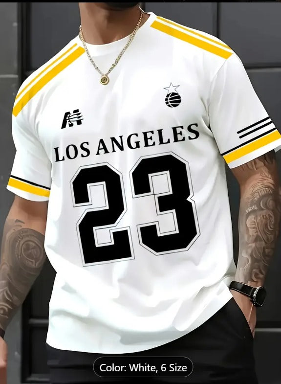 Camiseta gráfica ultracómoda 23 elegante camiseta de manga corta de poliéster transpirable para hombre: ajuste relajado, secado rápido y propiedades que absorben la humedad para uso informal.