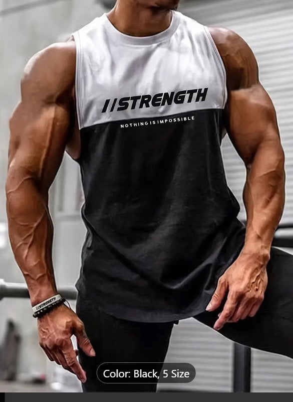 Camiseta sin mangas deportiva transpirable de secado rápido para hombre, camiseta ligera sin mangas para gimnasio, correr y entrenar. Mezcla de poliéster elástico con diseño de letras impresas, chaleco de entrenamiento muscular.